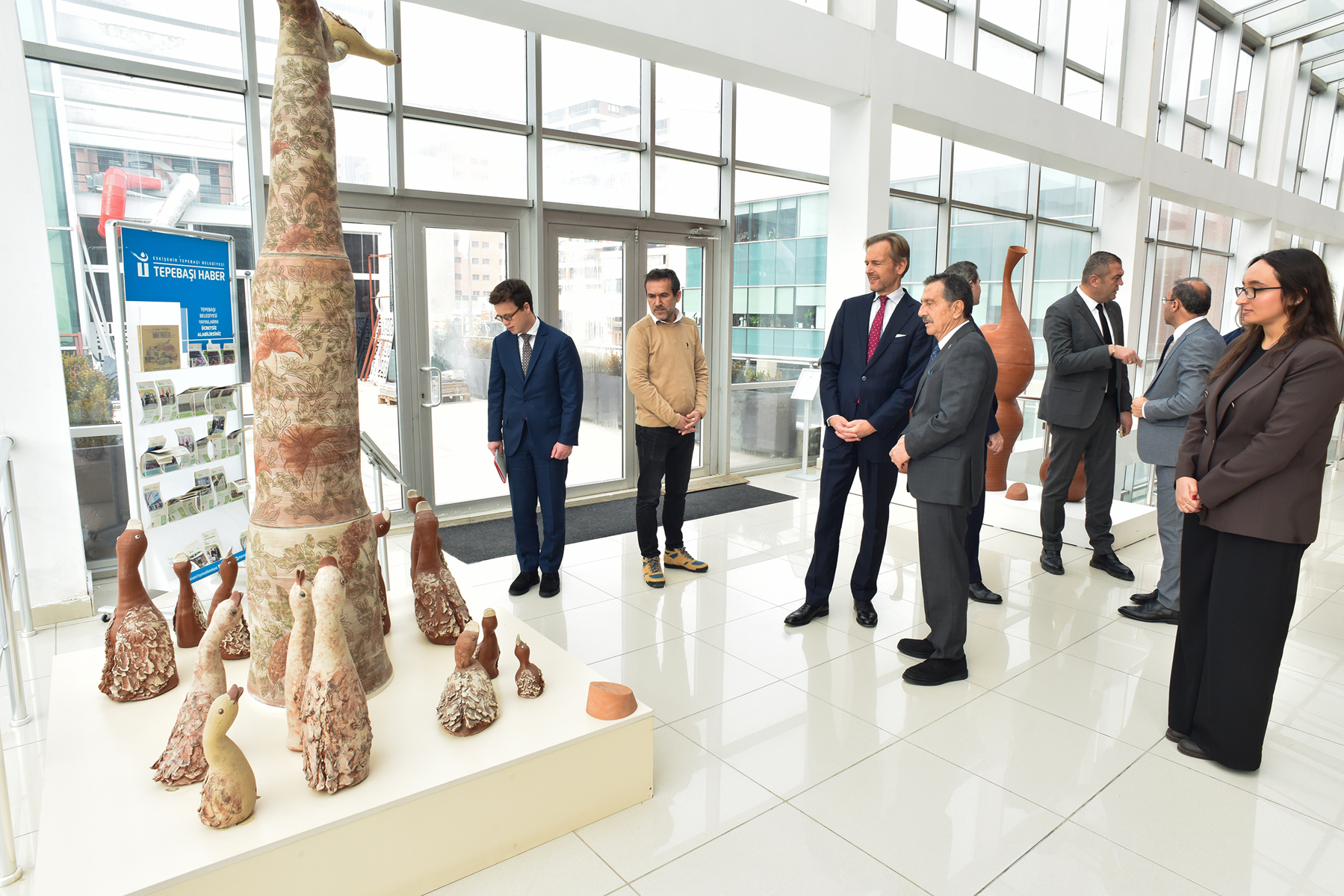 Ziyaret sonunda Başkan Ataç Büyükelçi Vende ve beraberindeki heyet, hizmet binası içerisinde yer alan pişmiş toprak sempozyumu eserlerini ve Kağıt Geri Dönüşüm Atölyesini gezdi.