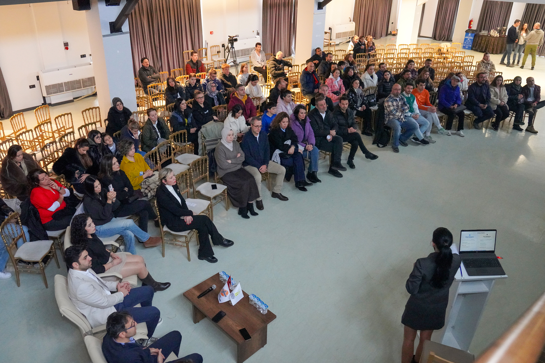 Ardından spor yaralanmalarında ilk tedavi konusunda sunum gerçekleştiren Dr. Öğretim Görevlisi Erdem Atalay, yaralanma anında yapılması gereken ilk yardım konusunda bilgi verirken, Diyetisyen Damla Hakses Erden ise sporcunun beslenmesinde dikkat etmesi gereken konular hakkında sunum yaptı. Erden, sporcunun antrenman öncesi ve sonrasında alması gereken protein, karbonhidrat oranlarını anlattı. Psikolog Doğukan Aldanmaz ise sporcu psikolojisi ve etkili iletişim konusunda sunum gerçekleştirdi.
