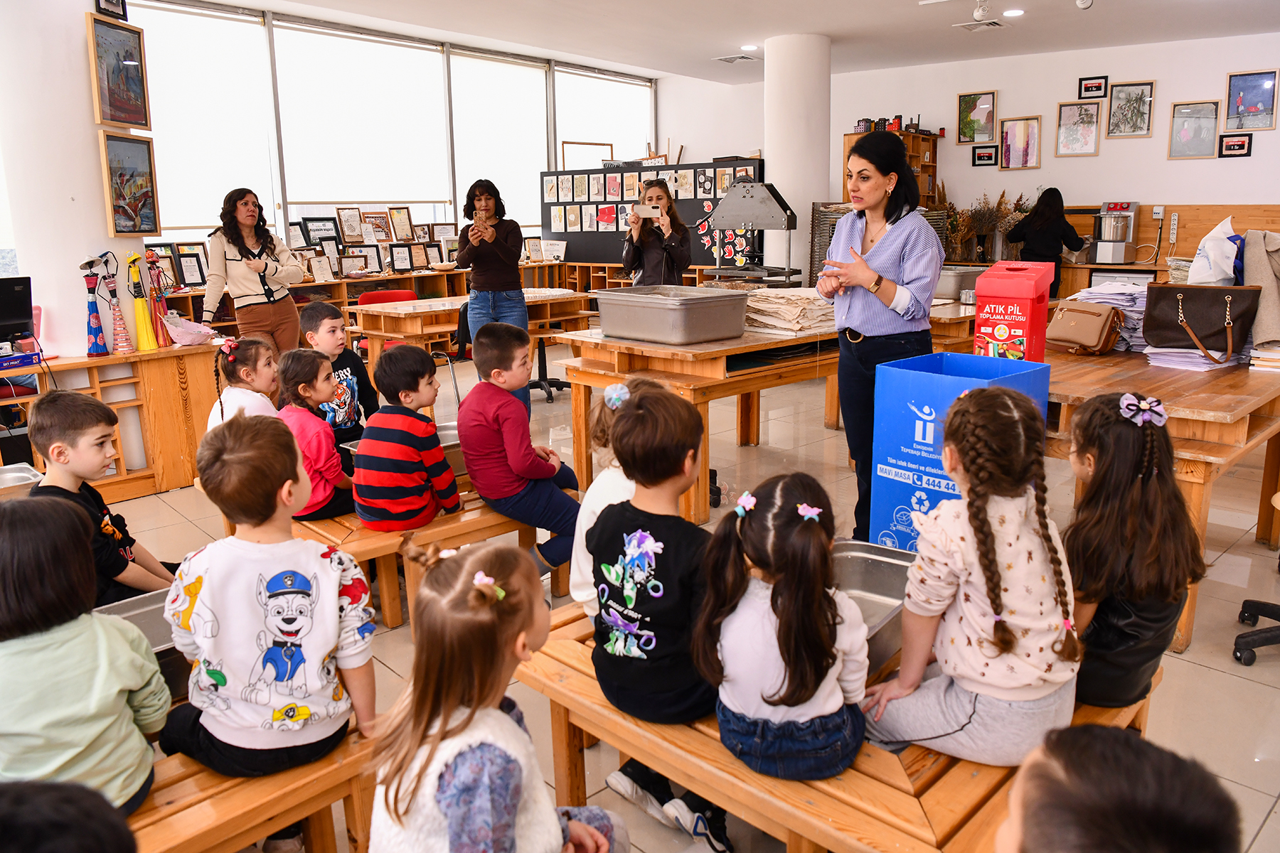 Geri Dönüşüm Atölyesi’nde uygulanan; çevre sorunlarının tüketim ve insan etkileriyle ilgisi ve çözüm önerilerini içeren bilinçlendirme programına katılan çocuklar, oyunlar ve görsel materyallerle doğayı korumanın yollarını eğlenceli bir şekilde öğreniyor. Düzenlenen 60 atölyeye 27 okuldan gelen bin 333 öğrenci, atık kağıtların geri dönüşüm sürecini uygulamalı olarak öğrenerek birer çevre dostu olarak merkezden ayrıldı. Öğrenciler ayrıca evlerinde de atık ayırmak konusunda özenli olup, çevrelerini de bu konuda teşvik edeceklerini belirtiyor.