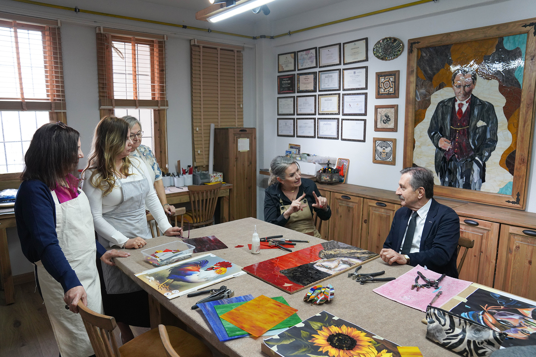 Tepebaşı Belediye Başkanı Dt. Ahmet Ataç, cam sanatçısı Gülşen Bayır’ı atölyesinde ziyaret ederek gerçekleştirilen çalışmalarını inceledi.