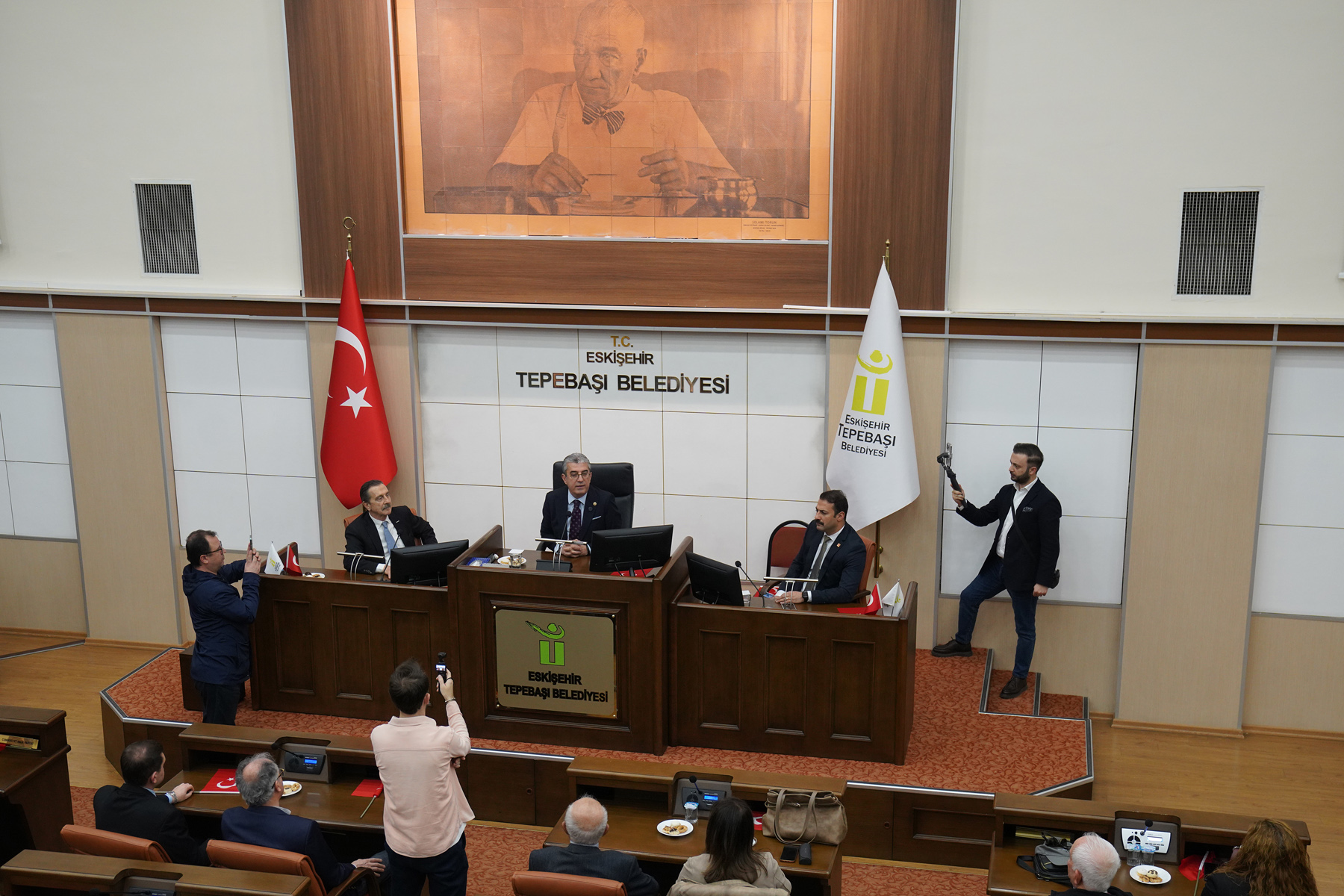 Tepebaşı Belediye Başkanı Dt. Ahmet Ataç, çeşitli temaslar için Eskişehir’e gelen CHP Grup Başkanvekili ve İstanbul Milletvekili Gökhan Günaydın’ı Tepebaşı Belediyesi’nde ağırladı. Günaydın, Başkan Ataç’ın makam odasında gerçekleştirdiği ziyaretin ardından vatandaşlar ve partililer tarafından Meclis Salonunda coşkuyla karşılandı.
